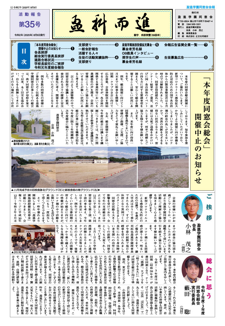 ・令和2年度同窓会総会中止となる