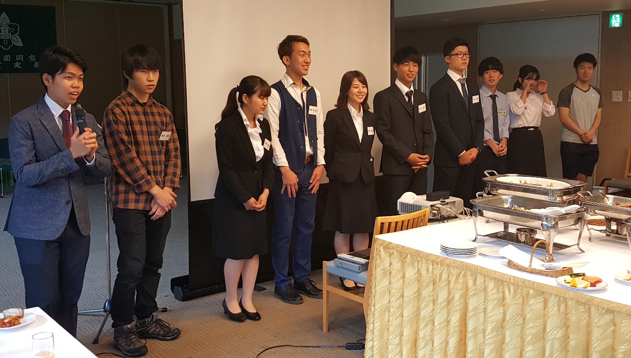 ご来賓として学園より鎌刈拓也理事長、菅龍人校長、藤原義明教諭、石岡康之教諭。同窓会から阿蘇品太浄副会長、瀬来和男副会長、西山美紀副幹事長、猪原修作事務局長、本瓦益久平成28年度総会実行委員長のご出席を賜りました。